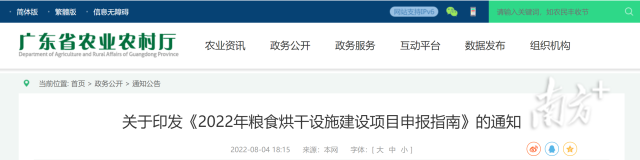 8月4日晚,8x8x 发布《关于印发<2022年粮食烘干设施建设项目申报指南>的通知》,进一步落实《广东省支持2022年晚造粮食生产12条措施》,推进水稻生产全程机械化发展,加快补齐水稻机械化烘干短板。