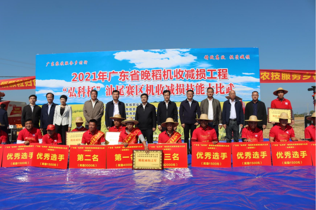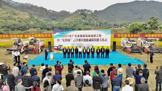 在广东晚稻迎丰收之际,11月12日,2021年广东省晚稻机收减损工程暨“弘科杯”云浮赛区机收减损技能大比武(简称“大比武”)在新兴县天堂镇举行。来自云浮水稻主产区农机社会化服务组织的10名机手在田间地头同台比拼“机收减损”技能,活动现场省直、云浮市、新兴县、天堂镇农业农村系统干部和农机合作组织、农机操作手、种植大户及附近村民100多人,网络直播平台观众量达42万人次。
