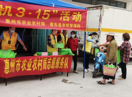 3月18日,惠州市农业农村局联合惠东县农机管理局在惠东县铁涌镇马满村开展以“提质增效,减损护农”为主题的“农机3·15”质量宣传主题活动,大力宣传农机安全生产、农机质量监管、农机购置补贴政策等知识,现场向农机经营企业发放《提质增效 减损护农——“农机3·15”活动倡议书》,向周边农户、农机手发放《农机安全生产宣传手册》《农机质量投诉常见问题问答》等宣传资料合计500余份,解答咨询50余人次,现场参与的农户、农机手约200人次。
