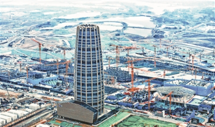 2月1日,河北雄安国贸中心建设工地一派繁忙景象。孙立君摄(影像中国)