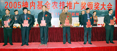 11月27日,中华农业科教基金会在浙江杭州向50名艰苦创业,并具有一定文化和技术基础,渴望致富,但还没有富裕起来的农民颁发了2005年度神内基金农技推广奖,并发给每位农民奖励基金3万元。这也是神内基金农技推广奖首次全部颁发给农民。