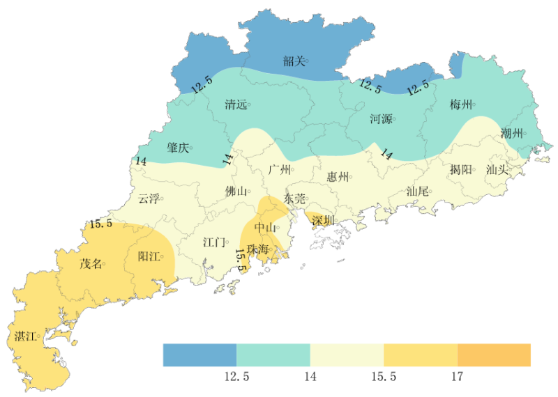 日照:全省平均月日照时数102.2小时,较常年同期偏多近3成。月日照时数分布:除西北局部、东南局部、广州、佛山局部地区110~139.0小时外,其余地区62.6~110.0小时。与常年同期相比,雷州半岛、东南局部地区正常到偏少3成以上,西北大部、中部局部地区偏多5成到1倍,其余大部分地区正常到偏多5成。
