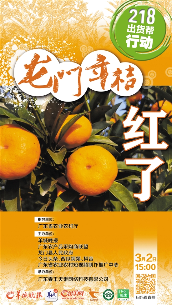 届时,读者可扫描海报的二维码进入羊城派的直播间,也可以在西瓜视频上搜索“战疫助农”进入直播间,围观副县长为年桔“带货”。