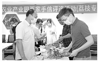 广东省现代农业产业园百家手信评选活动(荔枝)现场采购商对选品进行打分。 谢进杨 摄