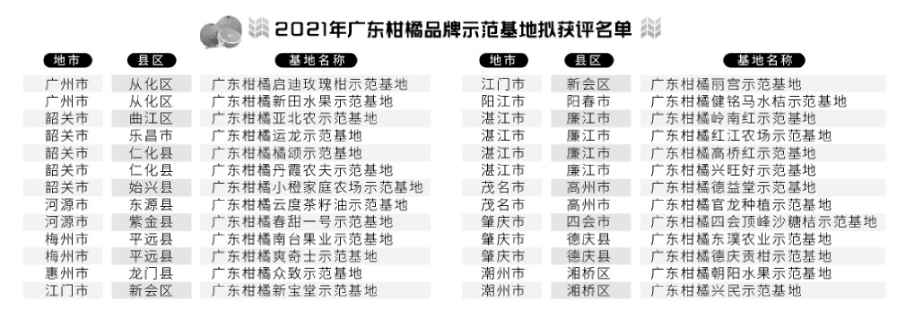 2021年广东柑橘品牌示范基地获评名单公示 26家基地上榜