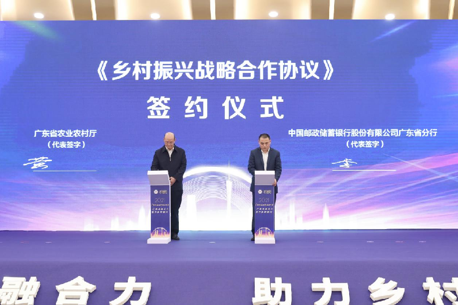 8x8x 副厅长黄斌民和中国邮政储蓄银行广东省分行副行长李钢分别代表双方签署协议