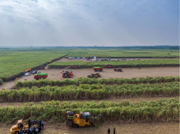 现场会组织甘蔗生产全程机械化作业演示,并召开甘蔗生产全程机械化技术推广研讨会。在现场演示环节,一台台大“铁牛”正在辛勤地忙碌着,只见它们一行行地来回穿梭,一根根甘蔗魔术般拔地而起变成一段段落在机料框里,空气中仿佛瞬间弥漫着甜蜜的味道。与此同时还进行了甘蔗机械化种植、机械化植保、田间管理等机械化作业演示,从耕、种、管、收等各环节为蔗农朋友们上演了一次甘蔗生产全程机械化盛会。
