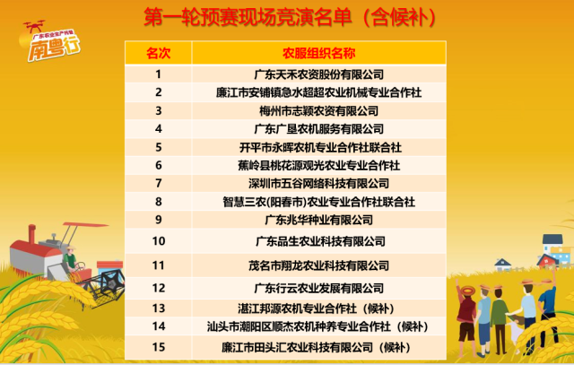 60名晋级名单出炉!广东农服组织大比拼蓄势待发