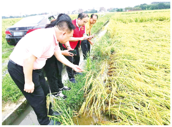 7月4日,农技服务轻骑兵茂名组在稻田里查看灾情,以拟定技术指导方案。 轻骑兵工作组 摄