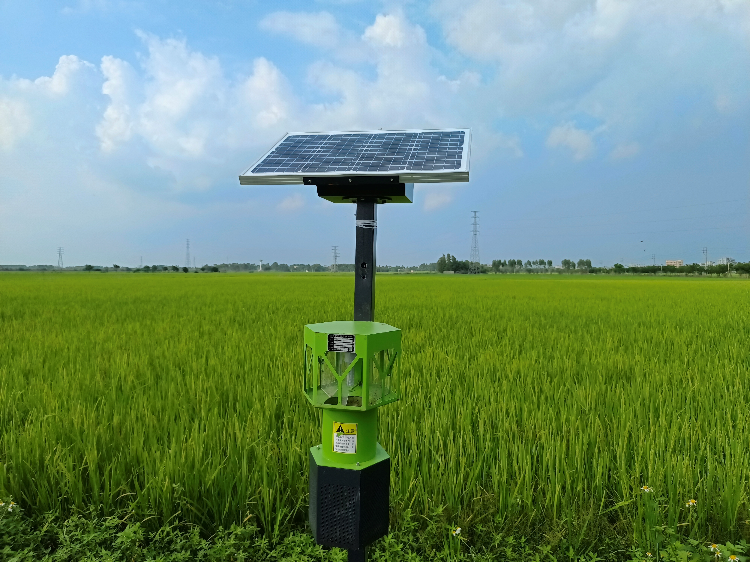 广东粤裕隆家庭农场托管的水稻田里的虫情监测设备