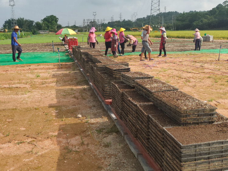 秧盘摆放至大田培育。