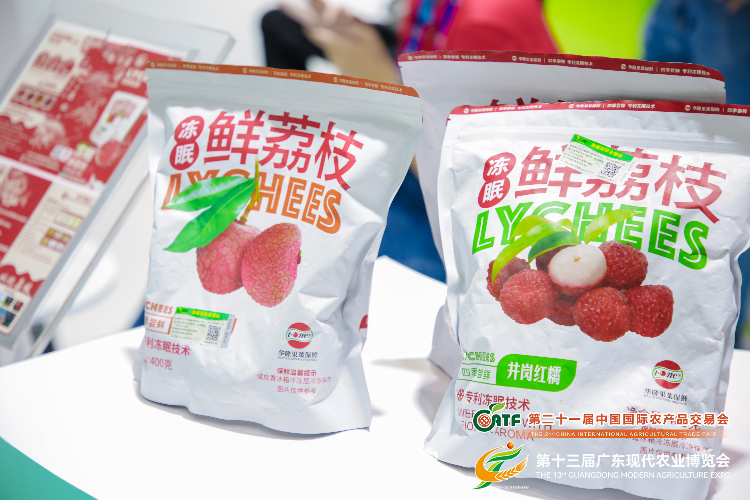 在广州展区,广州市从化华隆果菜保鲜有限公司带来了冻眠鲜荔枝。现场有观展者好奇地问道:“冻的荔枝好吃吗?”该展位负责人随即邀请观展者品尝荔枝,剥开外皮,荔枝清甜可口,滋味和新鲜荔枝别无二样。展位负责人介绍,通过冻眠保鲜技术,可以让消费者一年四季都能吃到新鲜荔枝。