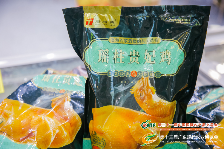 “瑶柱贵妃鸡是我们的明星产品,采用100天以上的广东麻黄鸡鲜制产品,皮脆肉嫩、口感鲜甜。”惠州顺兴食品有限公司大区销售经理曾健向记者表示,这一次参加农博会,他们带来了很多拳头产品,在预制菜领域,贵妃鸡和脆皮乳鸽等几款产品表现都很出色。