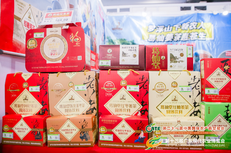 来自罗浮山本土的老字号企业广东葛仙堂健康股份有限公司也参加了本次农博会。据公司总经理朱格介绍,广东葛仙堂集种植、研发、生产、销售于一体,主打产品如姜茶,其原料是在罗浮山苏老村种植的药用小黄姜,属于粤字号农业品牌。