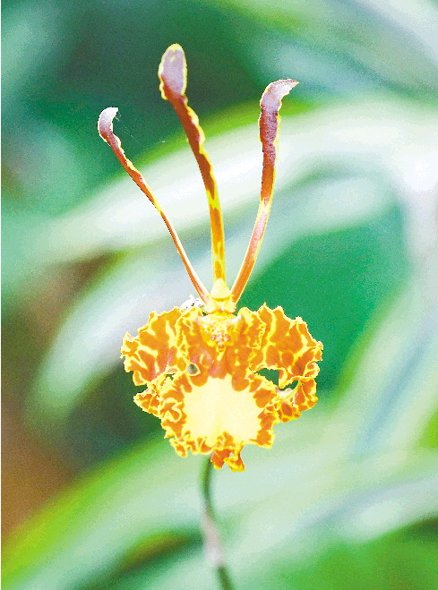 在父亲节来临之际,四会推出八款“父亲节花礼”以及一款父亲节专属之花。其中父亲节专属之花为兰花新品种“齐天大圣”(又名“父兰”),该品种属于蝴蝶文心兰,为四会当地自主研发。只见它通体棕黄相间,头顶三根细长的“触角”,像极了身穿锁子黄金甲、头戴凤翅紫金冠的“齐天大圣”孙悟空,该花也因此得名。
