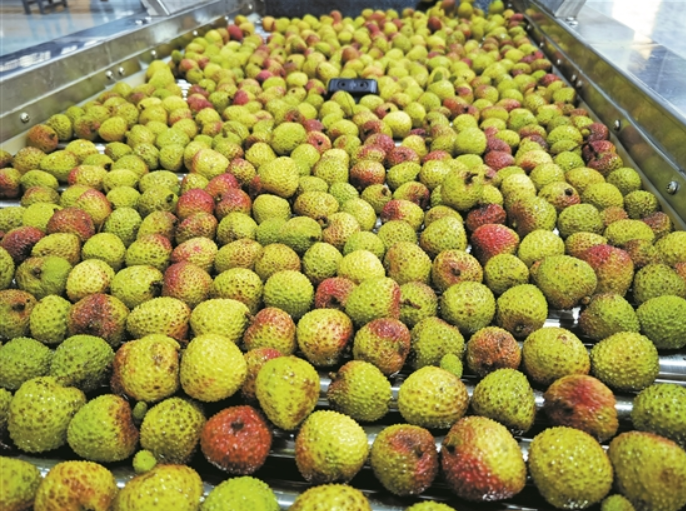 荔枝正通过全自动分拣预冷系统,既高效,又保鲜