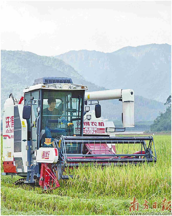 收割机收获早稻。 何晓晴 摄
