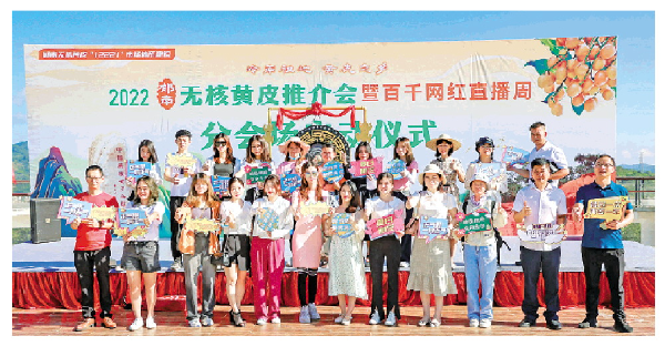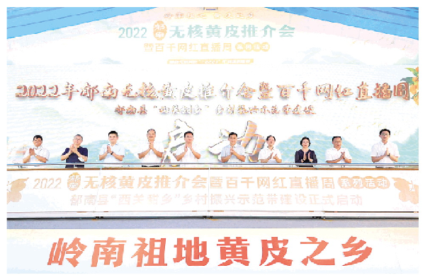 “历经百年的风霜,未曾改变其模样。金子般的果实多么璀璨,预示着幸福吉祥。”伴随着一支禾楼舞、一首《黄皮之乡新希望》,郁南无核黄皮节庆活动拉开序幕。7月22日,2022年郁南无核黄皮推介会暨百千网红直播周系列活动启动仪式(下称“活动”)在云浮市郁南县举行。来自全国各地的采购商、相关企业、新闻媒体等代表与54万郁南人民一起见证了这场黄皮丰收盛会。这场盛会已走过了21个年头。