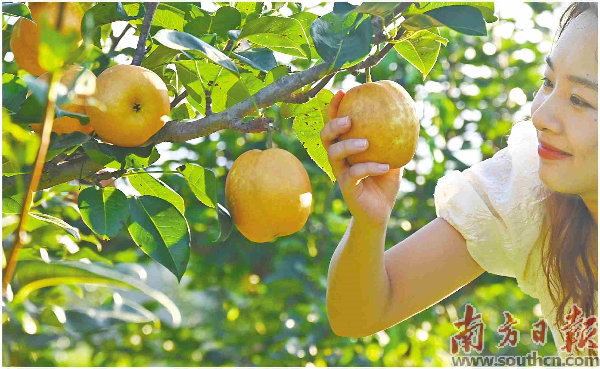 “连州水晶梨口感清甜,果肉无渣,饱满多汁,客户的反馈都很好,返单率也高。”李欣说,目前翠冠梨的销售已近尾声,后期果园新世纪等晚熟的水晶梨品种将陆续上市,销路不愁。该果园通过与当地农户租地合作和分红,带动100余农户提高了10%到20%的收入,在果园务工的30多名当地村民,每年还能获得约4万元的工资收入。