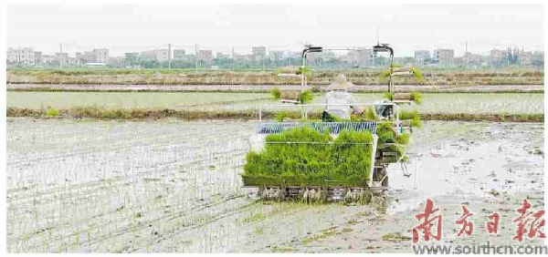 当地水稻种植大户林华兴介绍说,今年晚造水稻种植面积约3000亩,品种以广东丝苗米“19香”为主,预计8月底能完成晚造插秧工作。“我们从8月1日开始插秧,因为种植面积比较多,要插一个月的秧才能结束。现在已经完成了2200多亩,剩下的要到月底才能完成。”林华兴说道。
