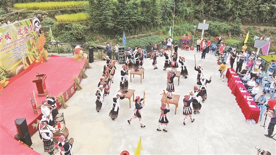 在村中新时代文明实践活动广场上,瑶族同胞戴起头饰、穿起盛装,吹响唢呐、鸣锣敲鼓,唱着瑶歌、跳着瑶舞,尽情表达丰收喜悦。他们还盛邀现场观众一同前往梯田,参与水稻收割体验活动,手把手传授割稻技巧。在众人的合力下,数亩水稻不一会儿便被收割完毕。