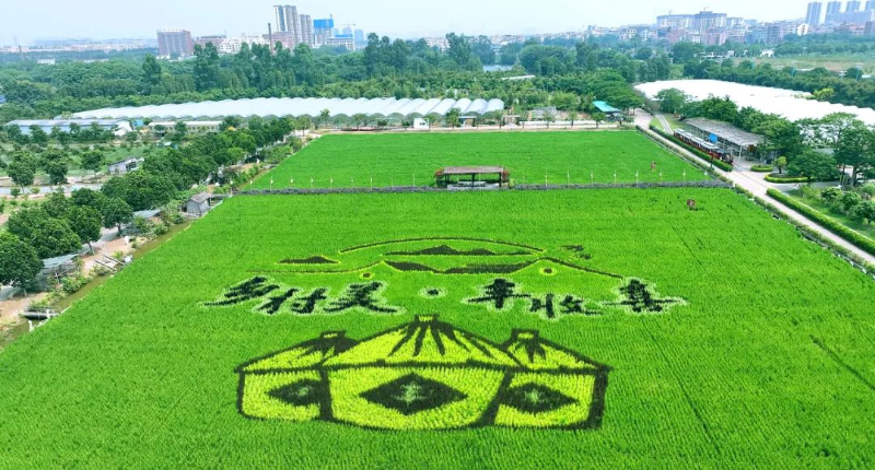 ■ 麻涌古梅生态农业园里的“乡村美·丰收喜”稻田画已成型