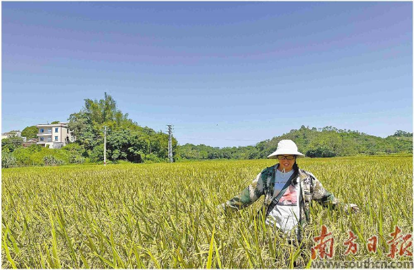 电白区家庭农场和规模农业经营发展态势良好,图为一名家庭农场主查看水稻生长情况。邹祥亮 摄