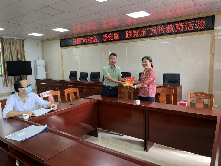 近日,惠州市农业农村信息中心科技特派员一行五人前往惠东县高潭镇黄沙村开展“听党话、感党恩、跟党走”宣传教育活动,激励基层党员干部和农民群众凝心聚力推进全面乡村振兴,充分调动了广大农民的积极性、主动性、创造性,扎实推进驻镇帮镇扶村工作。