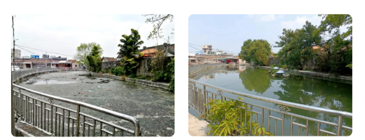 农村生活污水治理前(左),农村生活污水治理后(右)。