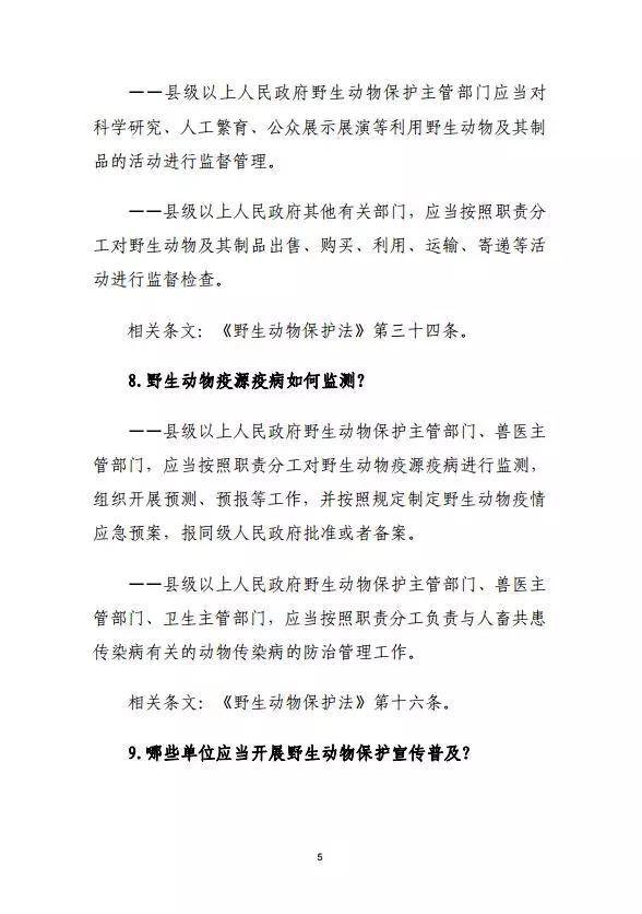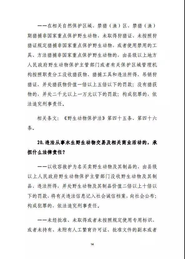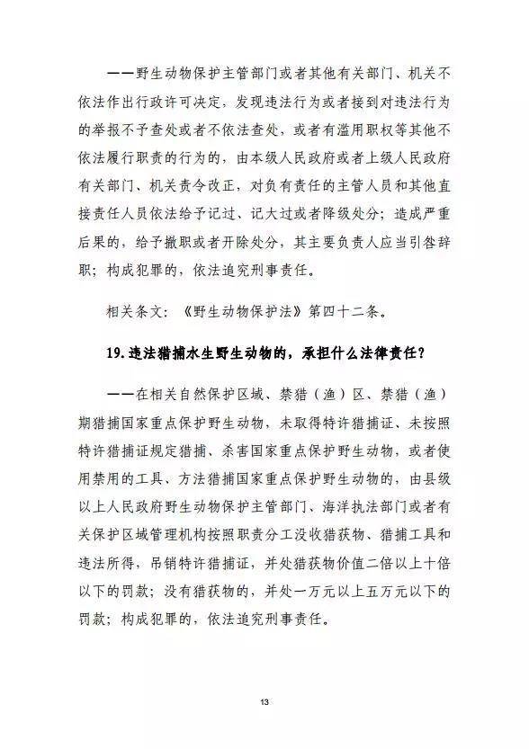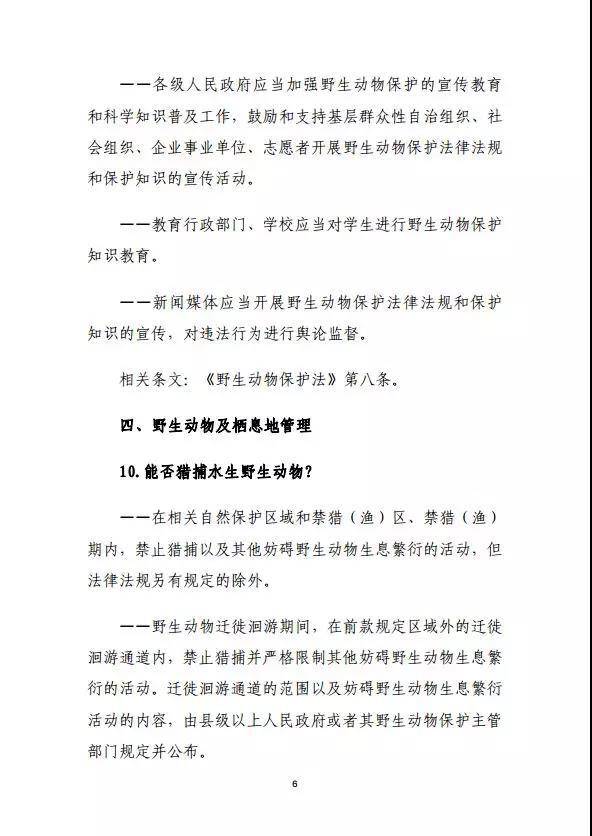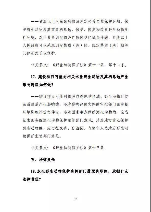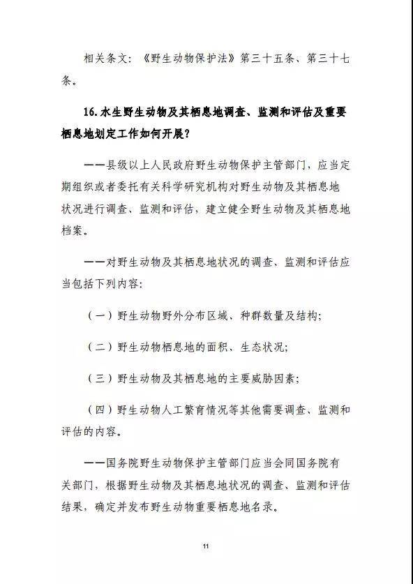 据介绍,本次普法宣传问答共23项问题,分为5个板块,从《中华人民共和国野生动物保护法》立法背景和基本情况、水生野生动物的范围、部门职责分工、野生动物及栖息地管理和相关法律责任等角度对野生动物保护法律法规进行全面解读。