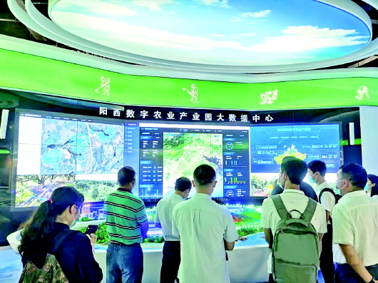 阳西数字农业产业园大数据中心迎来参观者。 资料图片 扫码(左上)查阅广东数字乡村发展试点名单。