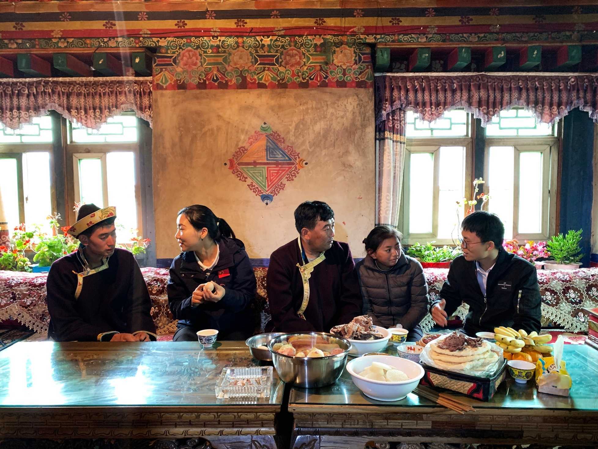 这是广东省第九批援藏干部谭琼的藏族“亲戚”。今年4月,谭琼来到距离林芝米林县城16公里的彩门村,与阿旺次成一家结对结亲,从那时起,他们便成了没有血缘的亲人。在谭琼等人帮助下,阿旺次成一家走出疾病带来的阴霾,逐渐有了起色。