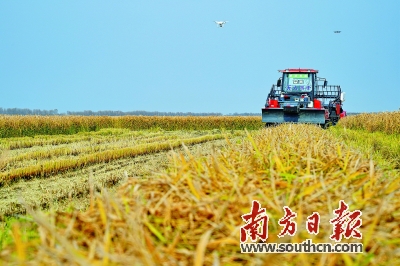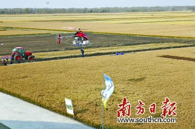11日当天,七星农场举行农机无人驾驶作业演示会,除了收割机和接粮机外,现场40多种农机具还再现了无人化水田筑埂、搅浆、插秧、旱直播,以及无人化旱田灭茬、起垄、播种、喷药等20项农机作业演示。