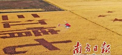 10月11日一大早,一台收割机在晨光中开足马力,驶向远处的稻田。在垄上辛勤劳作后,机身贮仓即将装满,接粮机随即跟上,将收割机收获的稻谷转运到粮仓中。
