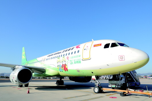 据介绍,“梅花”象征着“梅花香自苦寒来”的梅州城市精神,以此提升梅州城市识别度;梅州以创建全国闻名的柚果产业化示范市为目标,以“好山好水出好柚,常来梅州更长寿”为主题,将“广东梅州柚”打造梅州的金字招牌,因此以“绿水青山”“金柚”等色系及图案作为机身彩喷元素;吉祥物“客客”代表梅县金柚,“都都”代表大埔蜜柚,展示了梅州柚的两个品种。