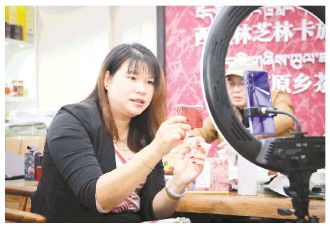 交易市场林芝馆相关负责人参与直播活动,推介巾帼助农产品。吴秒衡 摄