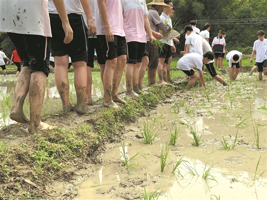 如以丘陵山地为主的江门鹤山市双合镇近年来依托本地农业特色大力发展乡村旅游,农耕研学游吸引了大量的珠三角学生和家庭前来体验。从2019年至今,双合镇每年接待研学游的人数数以万计。目前春季主要开展的是茶文化研学游,以及插秧、种植粉葛、红薯、木薯等农事体验活动。此外,江门市双好茶韵农耕研学实践教育基地还成功入选2020年度省级休闲农业与乡村旅游示范点候选名单。