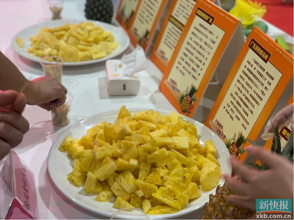 韩小姐告诉记者,当天只带了徐闻巴厘菠萝和徐闻金钻凤梨两个品种各两箱产品过来,“没多带产品,现场不设售卖,但来宾品尝后喜欢的话,可以扫桌子上的小程序自行下单,我们免费邮寄到家。”