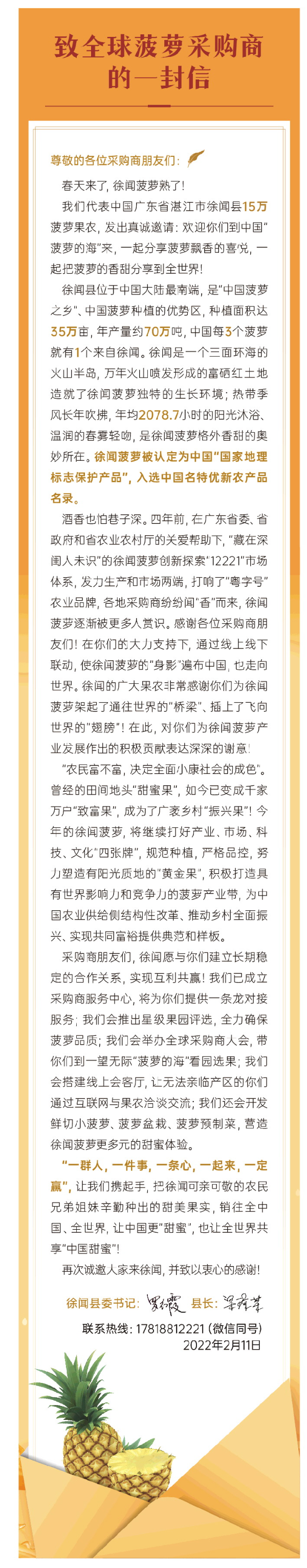 湛江:徐闻菠萝熟了!书记县长公开信引客来
