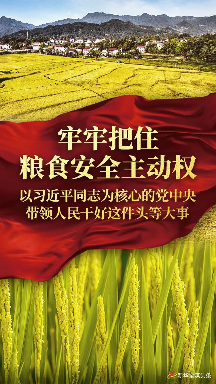金秋时节,希望的田野弥漫着丰收的气息。在以习近平同志为核心的党中央坚强领导下,亿万中国人民辛勤耕耘、不懈奋斗,一定能够牢牢守住粮食生产和粮食安全“国之大者”,把中国人的饭碗牢牢端在自己手中!