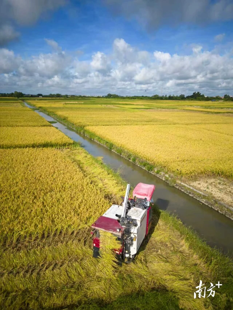 秋风拂动,南粤稻田翻起新一层金浪;稻穗垂首,岭南农户喜迎又一个丰收。忙碌的身影在田间地头穿梭,收割机轰鸣着将饱满的水稻卷入,稻米簌簌落袋,秋意熨帖入仓。