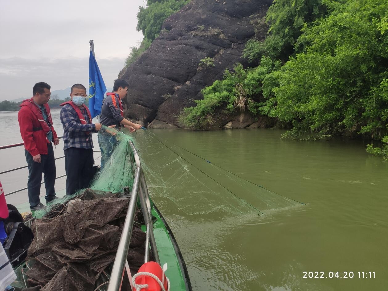 4月20日,梅州市农业农村局联合梅州海事局在梅江河松口河段开展“亮剑2022”禁渔专项执法和水上交通与渔船安全专项整治行动,重点打击禁渔期间电、炸、毒鱼等违法违规行为,全面排查船舶安全隐患,维护水上交通和渔业船舶安全。梅县区农业农村局、松口海事处、松口镇政府派员参加。