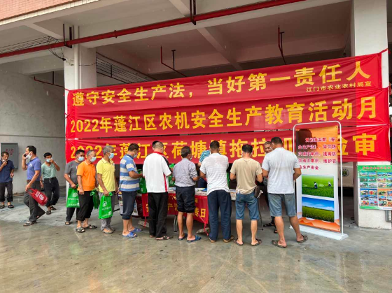 二是规范农机牌证管理,从源头上防范农机安全生产风险,将农机驾驶技术培训办在农机手家门口,让农机手放心、安心参加培训,提升农机手操作技能和安全意识,免费培训120名农机手并全部通过联合收割机驾驶资格考试,提高农机驾驶持证率。蓬江、新会和鹤山等地继续开展免费年审送检下乡服务,免费年审检验拖拉机约70台,发放车身反光贴400多张,确保拖拉机等农机技术性能合格,严格落实农机“不安全、不出门”。