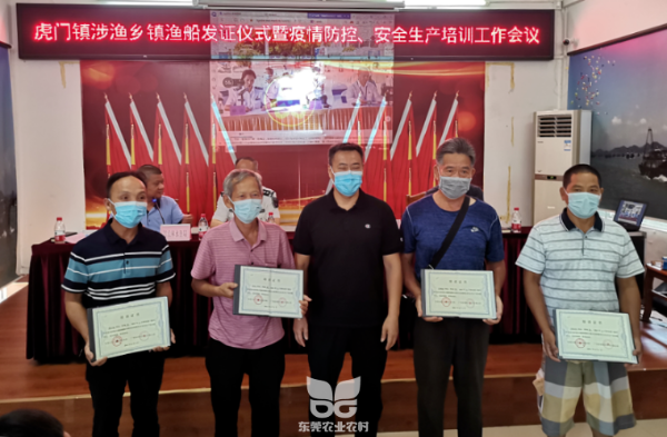 8月13日,对于新湾渔民来说是个值得纪念的日子,因为部分符合监管要求的“三无”渔船有了一个新的名称——涉渔乡镇渔船。当日,虎门镇举办涉渔乡镇渔船发证仪式暨疫情防控、安全生产培训工作会议。会上,东莞市海洋综合执法支队、虎门镇农林水务局和新湾社区干部向渔民颁发了“涉渔乡镇渔船证书”。