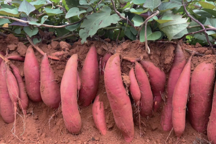 (一)“普薯32”。“普薯32号”因酷似西瓜瓤的果皮,它有一个更亲切的名字“西瓜红”。1996年普宁市农业科学研究所承担了广东省“九五”重点科技项目“优质丰产抗病甘薯良种选育”,育成“普薯24”通过了广东省品种审定、国家品种审定。在此基础上,用“普薯24”为母本,以从徐州甘薯中心引进的早熟优质高胡萝卜素甘薯品种“徐薯94/47-1”为父本进行杂交,最终育成早熟、丰产、优质、高胡萝卜素、薯形美观的甘薯新品种“普薯32号”。2021-2024连续4年被定为广东省农业主导品种,2023年“普薯32号”作为全国唯一一个鲜食型甘薯品种入选国家农业主导品种。据统计,“普薯32号”在全国累计推广面积超2000万亩,经济产值超800亿元。