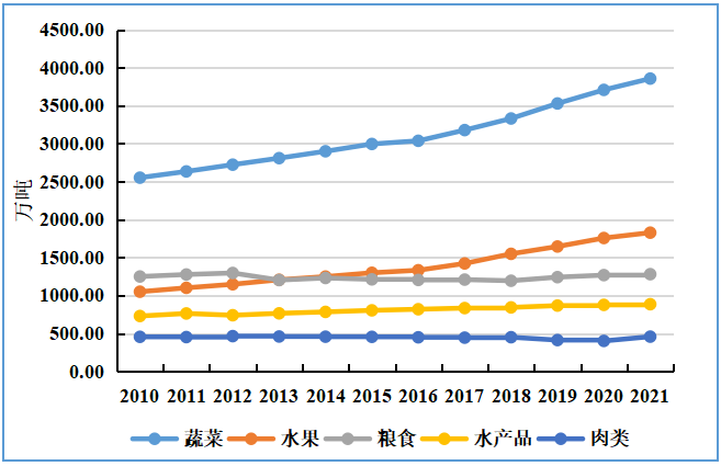 广东主要农产品总产量(数据来源:广东统计年鉴)