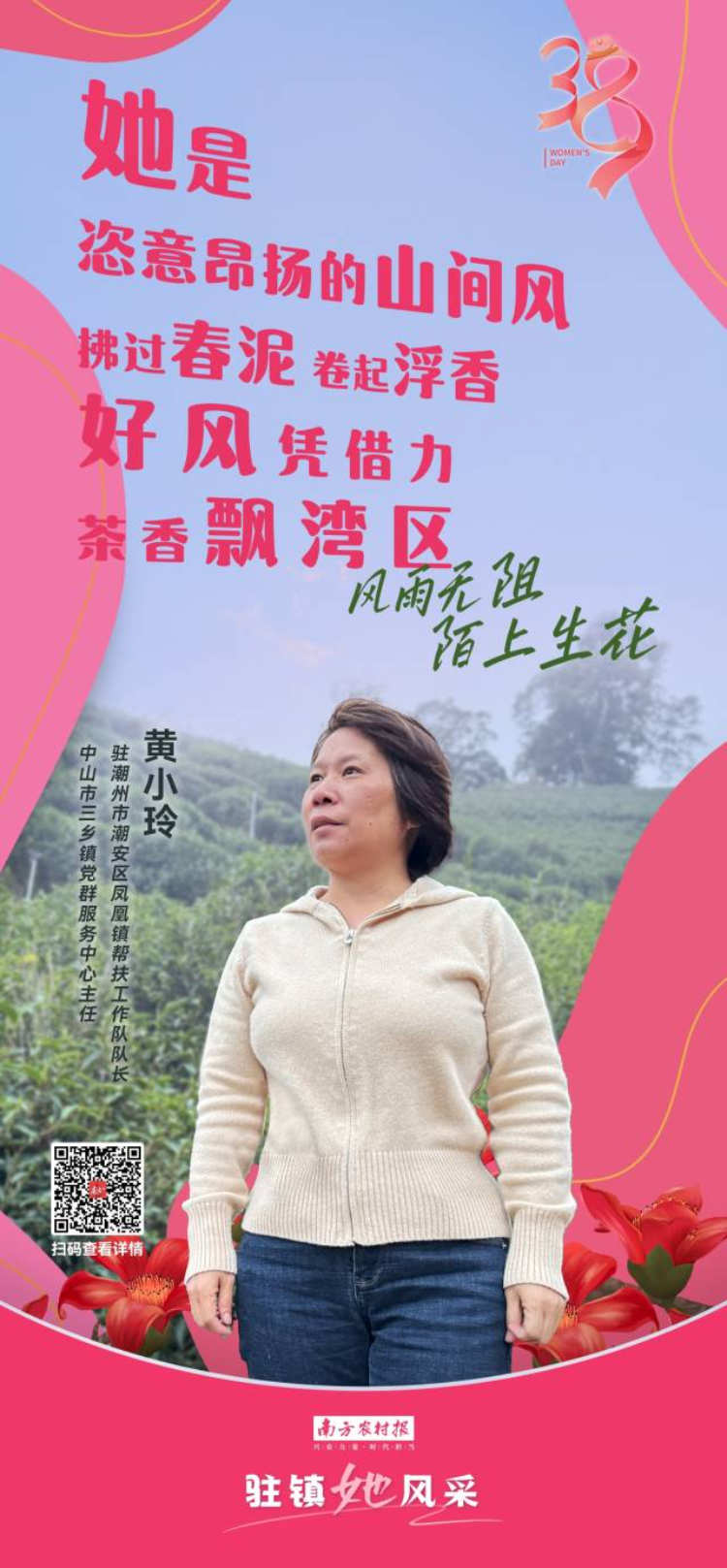 “解决问题的答案就藏在那些山路上。”三月初,春雨淅沥,驻潮州市潮安区凤凰镇帮扶工作队队长黄小玲望向窗外水墨画般的茶山风光,回味开展驻镇工作八个月来那些浸润着茶香的晨昏。从2024年盛夏的匆忙,到如今的充实安心,她用一双善于发现的眼睛,一颗柔软的心,带领着工作队走过一条条山路,寻找问题、解决问题,在乡土烙下深深浅浅的脚印,帮助当地村民实现了一个个心愿,为凤凰镇带来了新的发展活力。