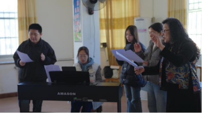 据悉,凤村镇少年儿童合唱美育浸润计划自2024年12月项目启动以来,省文联驻凤村镇帮镇扶村工作队深入基层,广泛调研,积极听取镇村两级领导、学校老师和家长的意见与建议,精心制定了合唱团的组建方案。在镇中心小学和各级村“两委”的全力支持与配合下,报名参加合唱团的孩子近150人。最终选拔出近50名孩子成为合唱团首批团员。