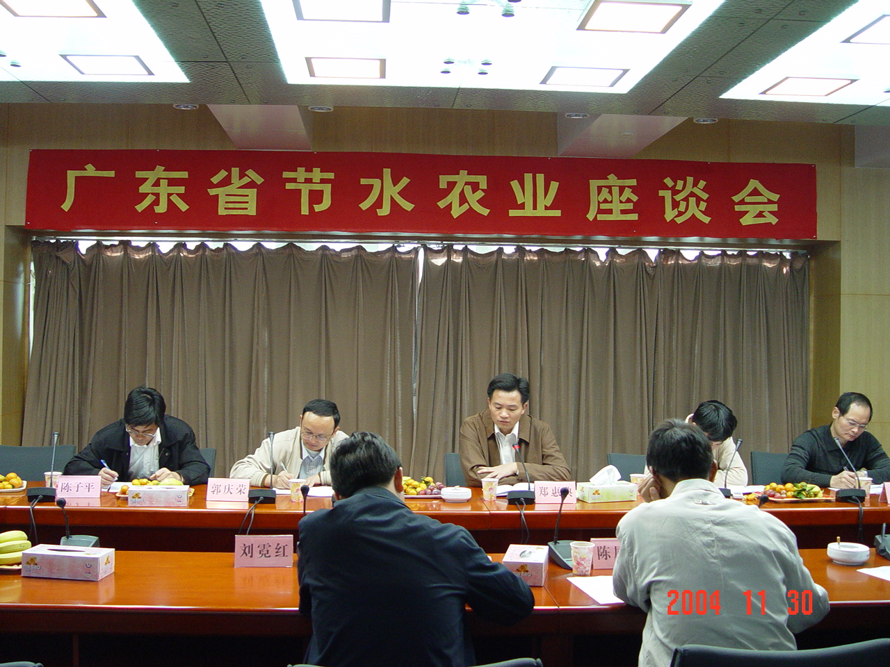2004年11月30日,广东省土壤肥料总站组织召开了广东省节水农业座谈会。会议的主题是进一步探索我省节水农业发展之路,促进我省农业可持续发展。参加会议的有厅种植业处、农机化办、省水利厅、省水科院、省农机研究所、市农机研究所、省生态环境与土壤研究所等单位的有关同志、节水农业专家及技术人员等15人,郑惠典站长主持了会议。