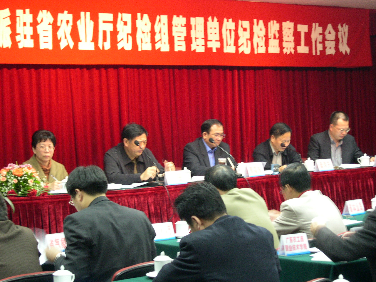 2005年3月31日,省纪委派驻省农业厅纪检组在广州召开了授权管理单位纪检监察工作会议。会议总结交流了去年工作,研究部署今年任务。省直和中央驻穗16个厅局级单位的党组(党委)主要负责人、纪检组长(纪委书记)、监察室主任及其他纪检监察干部80多人参加了会议。李容根副省长、省监察厅武田副厅长、省纪委干部室许泽红主任和省纪委三室张健生副主任到会指导。李容根副省长、武田副厅长在会上作了重要讲话。
